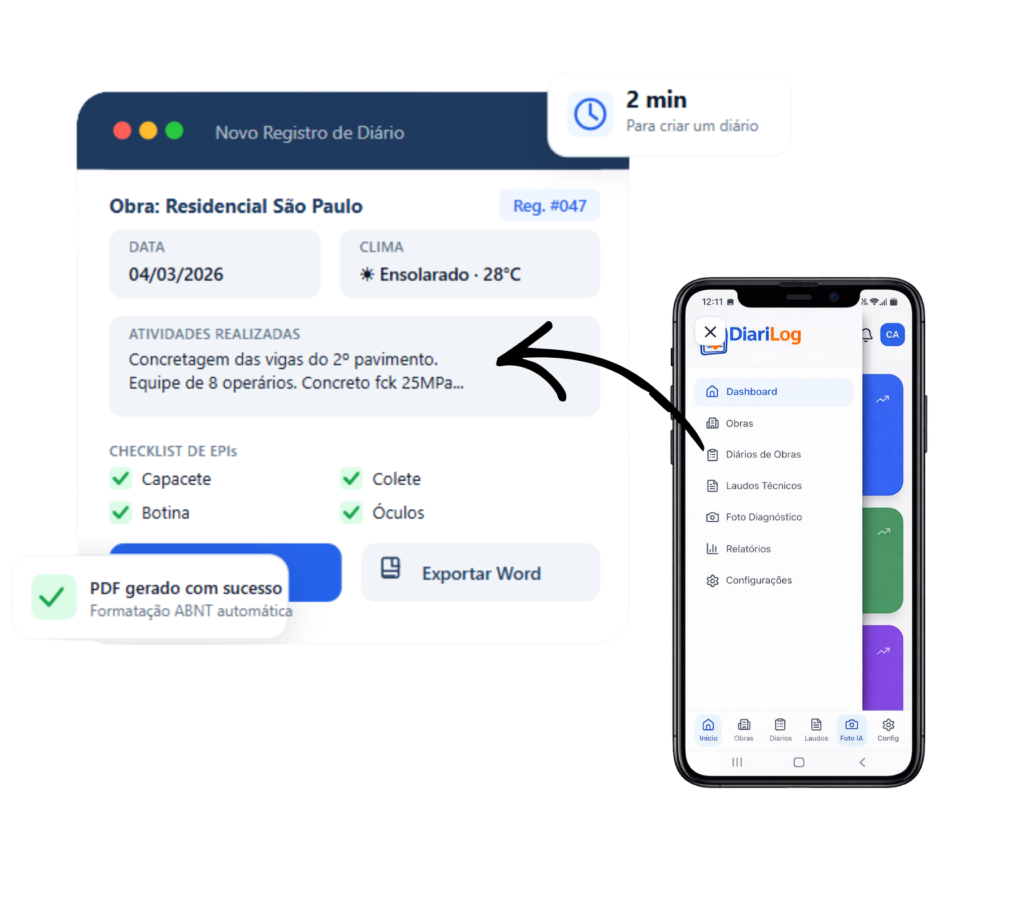 DiariLog – Diários de Obras e Laudos de Engenharia em minutos